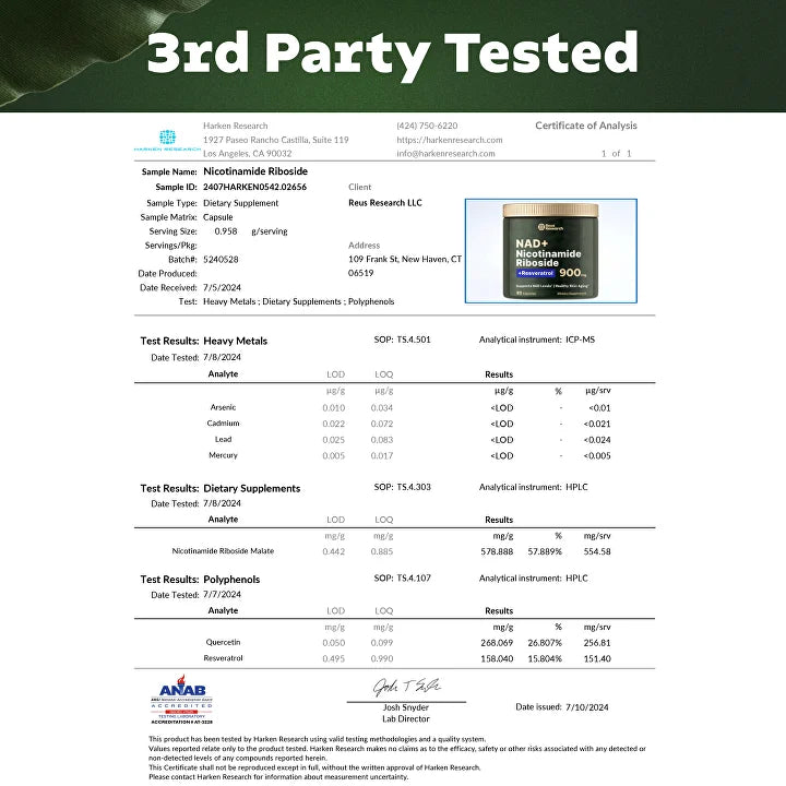 El suplemento está compuesto de nicotinamida ribósido liposomal de alta pureza para apoyar los niveles de NAD+ y mejorar la energía celular.